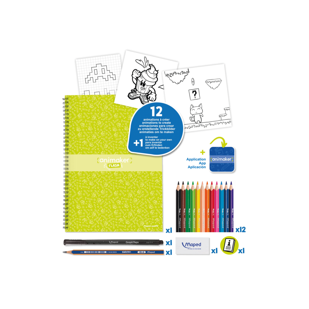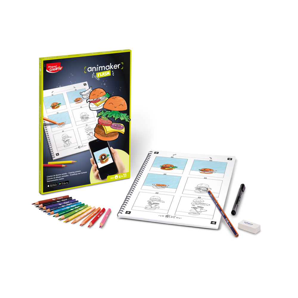 Dê vida aos seus desenhos com o aplicativo Animaker! As crianças podem colorir, completar ou inventar suas próprias histórias para resultados únicos e surpreendentes, para guardar ou compartilhar! Elas aprenderão os conceitos básicos da animação enquanto se divertem. Tudo que você precisa para criar animações como um profissional. 12 lápis de cor + 1 caderno de desenhos animados para criar em cada caixa.