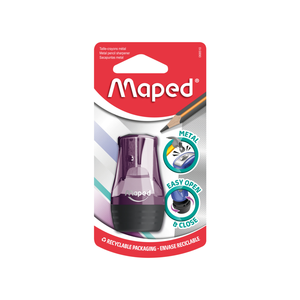 Tonic Metal, o apontador de lápis eficiente e durável, com um inserto de metal. Apontador de lápis de um furo. O apontador de lápis Tonic Metal possui um inserto de metal, que garante qualidade e durabilidade ótimas de afiação.