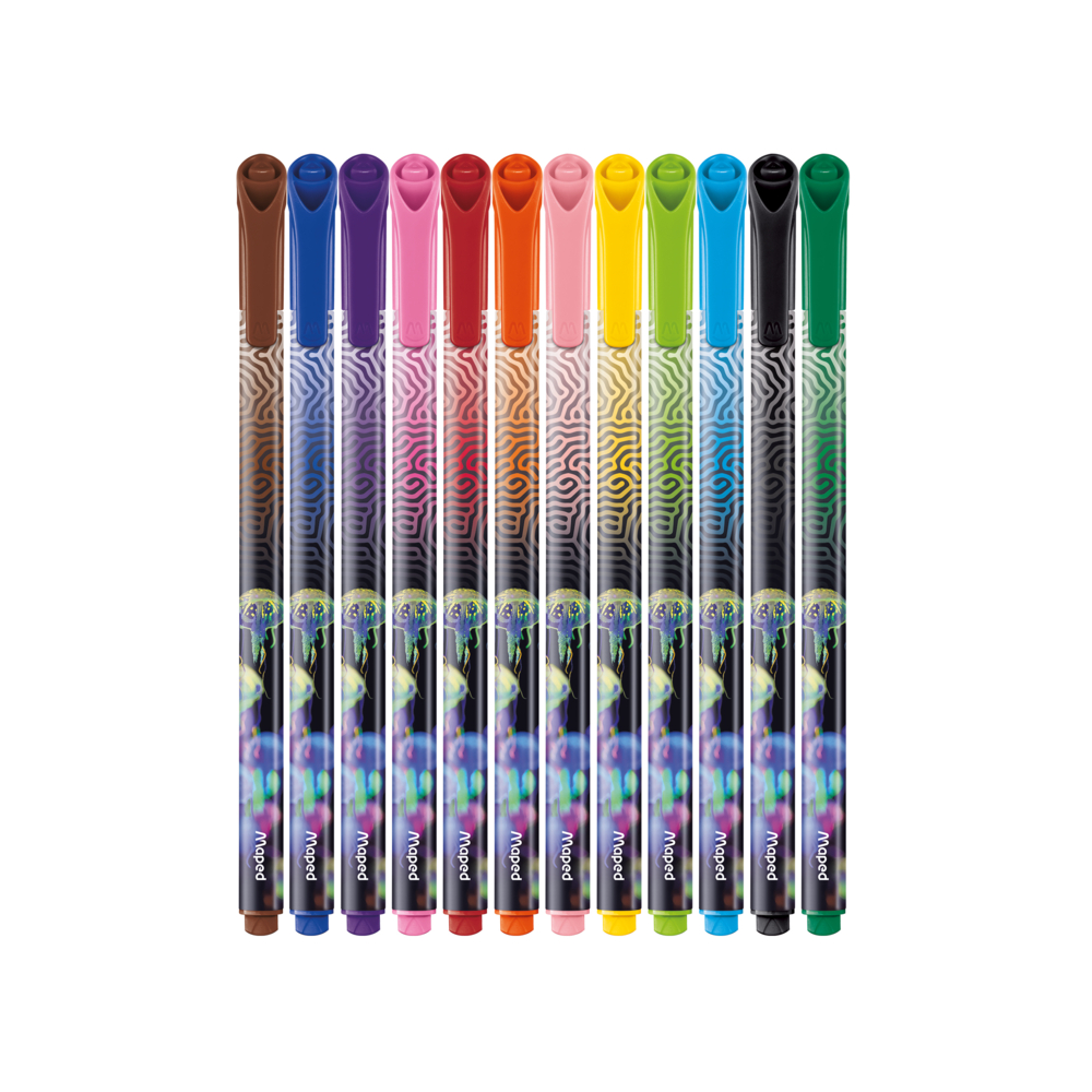 Esta caixa com 12 canetinhas premium encantará os fãs de cores brilhantes e intensas! Com sua ponta média macia e resistente de 0,8 mm, você poderá colorir com a máxima precisão. Essas canetinhas são tão confortáveis para escrever e fazer anotações quanto para colorir.