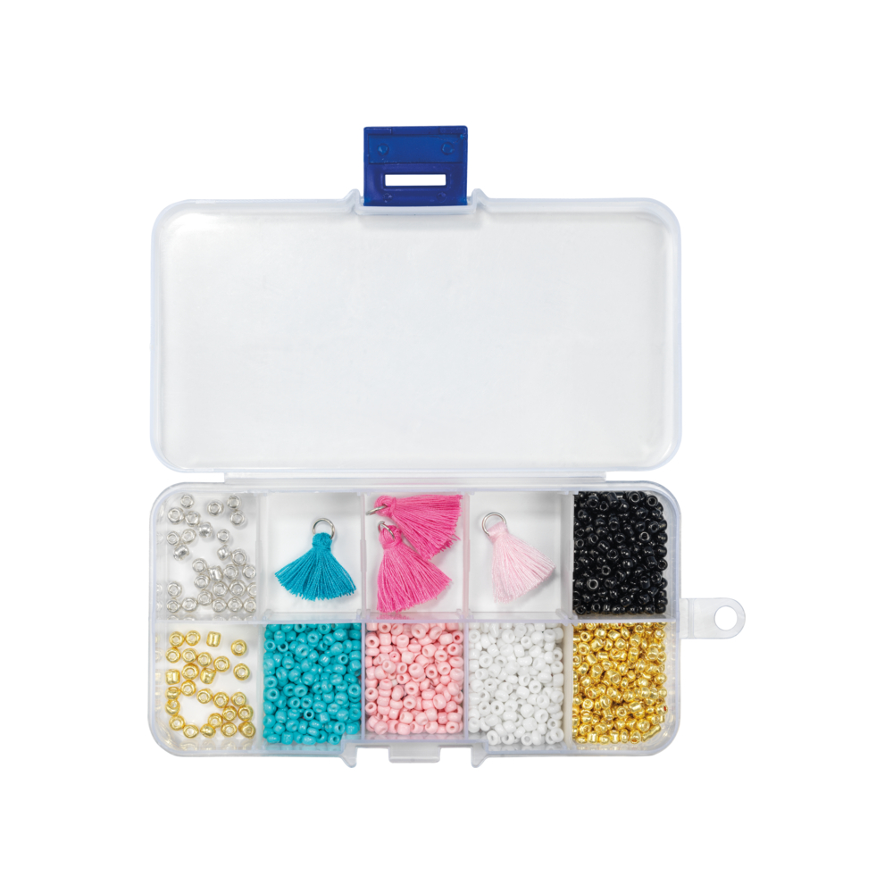 Inclui uma caixa de armazenamento de miçangas para uma atividade “sem bagunça”