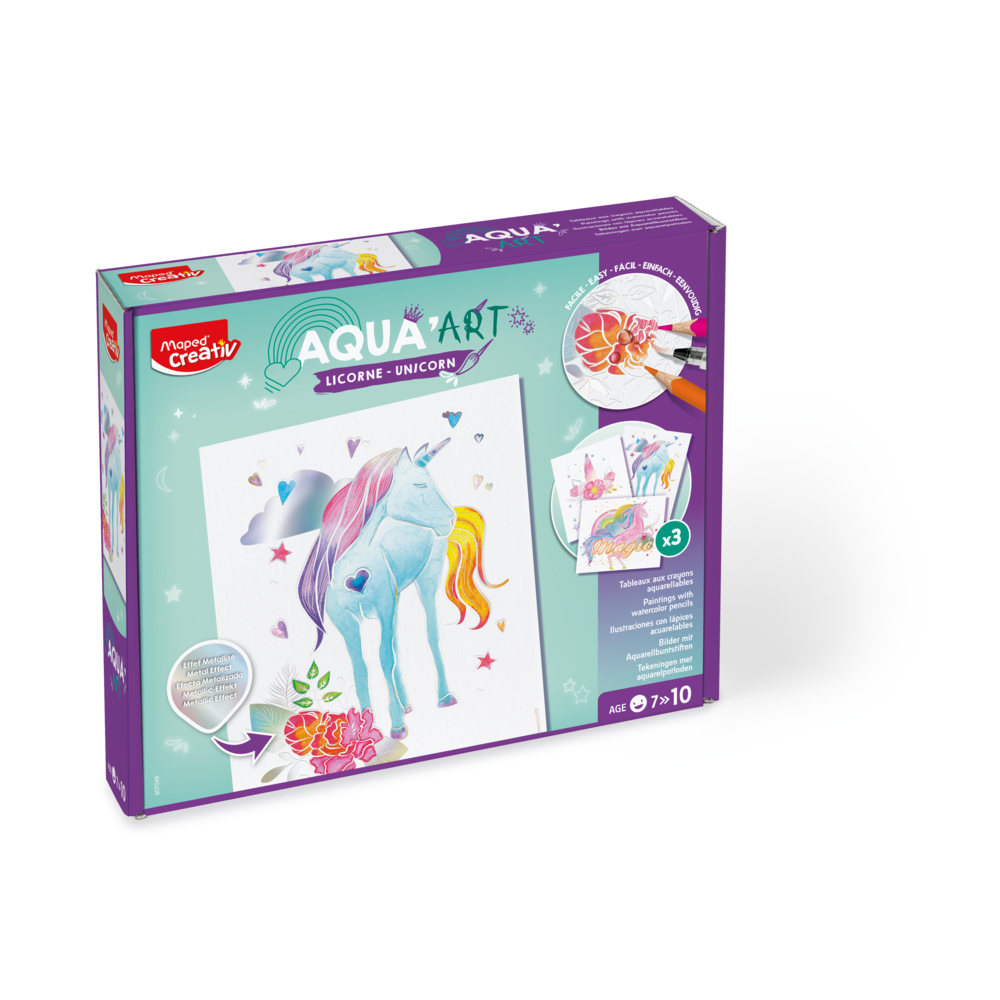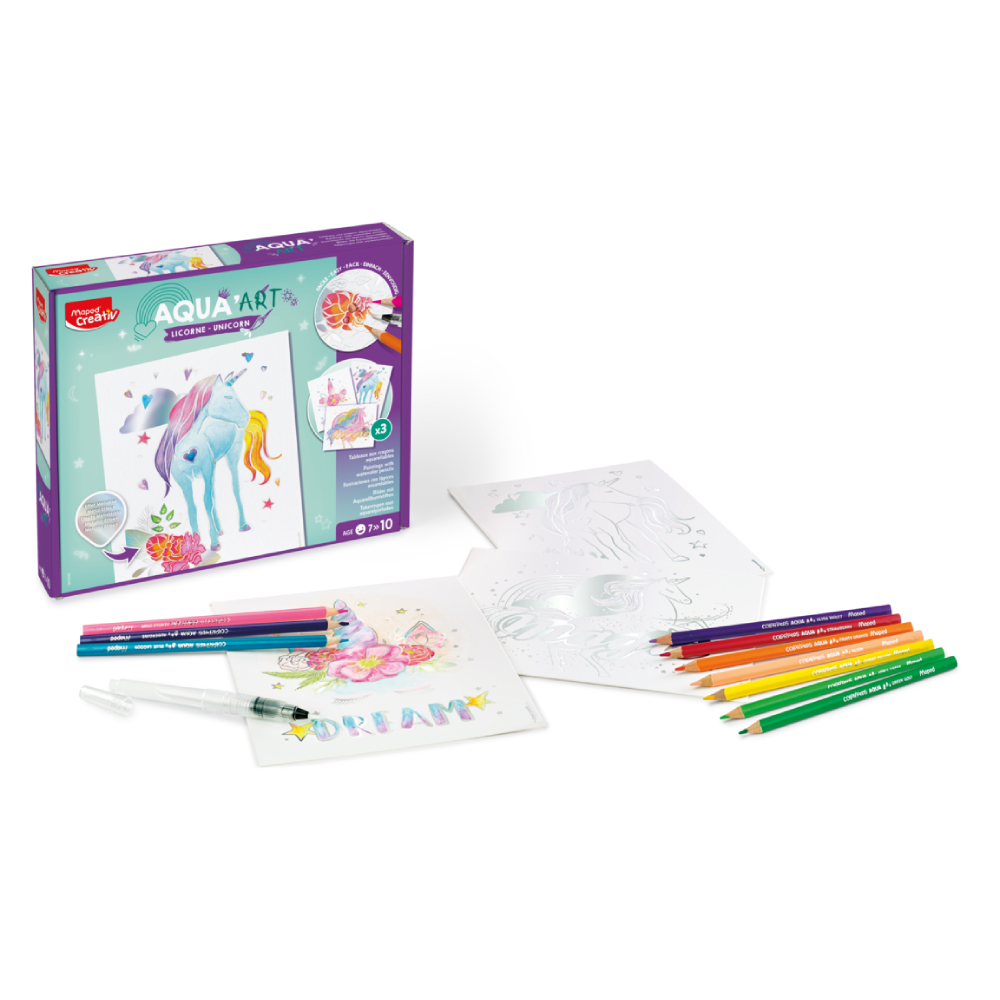 Este kit encantador é perfeito para crianças que adoram unicórnios e sonham com um mundo cheio de cores e fantasia. O kit inclui uma paleta de aquarelas vibrantes, pincéis de alta qualidade e folhas de papel com lindas ilustrações de unicórnios e paisagens mágicas.