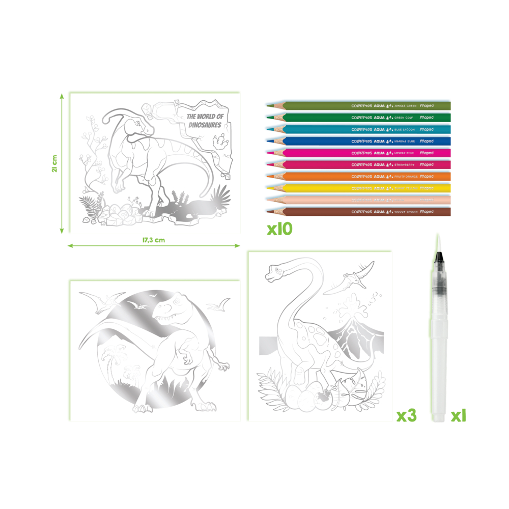 Desperte a criatividade e o interesse pelo mundo pré-histórico com o Kit De Pintura Aquarelável – O Mundo Dos Dinossauros da Maped!