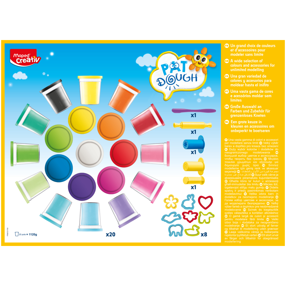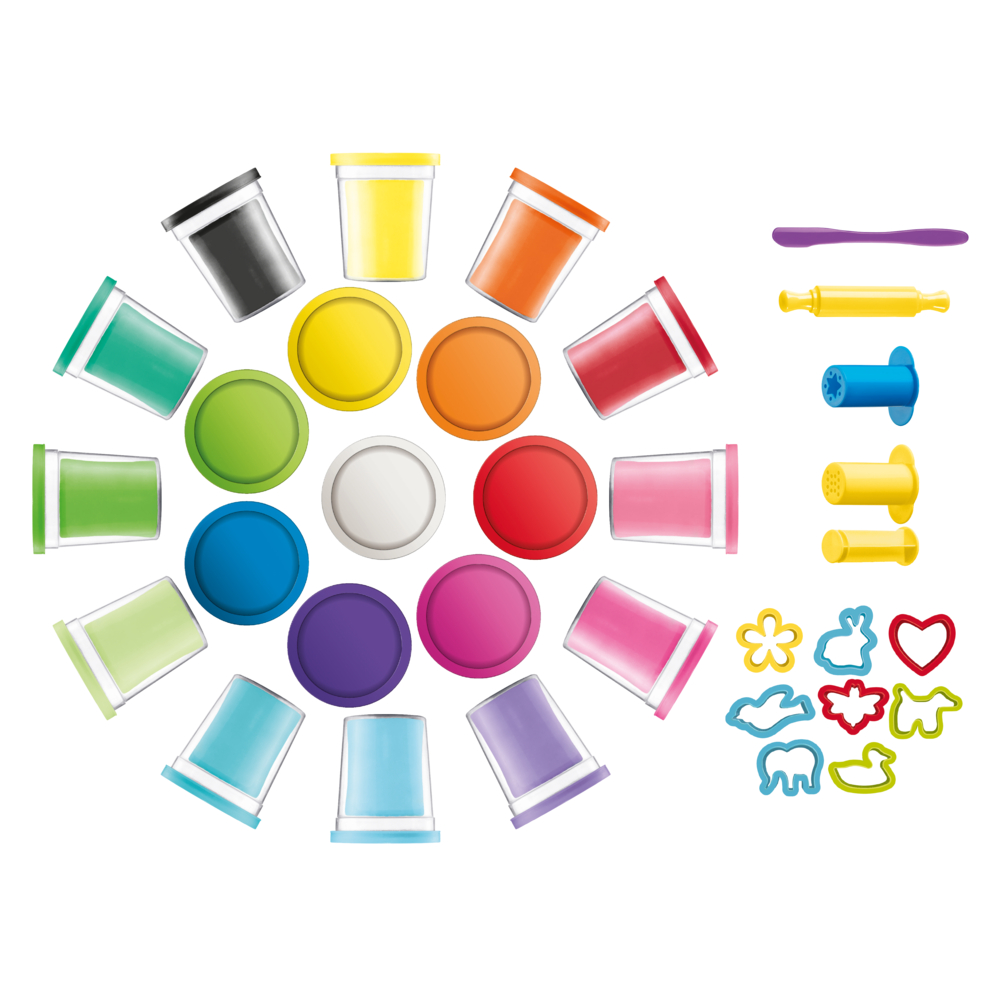 Com suas 20 massinhas coloridas e seus numerosos acessórios, você terá inúmeras possibilidades para explorar.