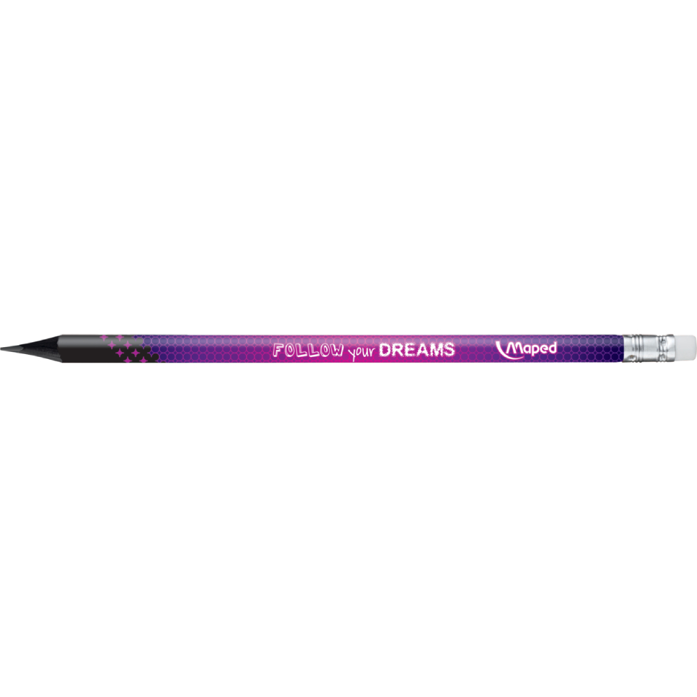 Lápis grafite colorido Black'Peps ENERGY! Sua forma triangular facilita o manuseio e é confortável de usar. A ponta com borracha permite apagar em todas as situações!